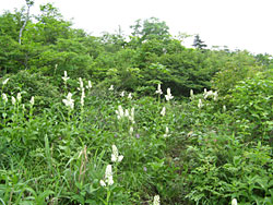 夏草で覆われた畑も、数は力、お昼までにはすっかりきれいになり、苗木も元気をとりもどしました。 ●不忘山登山 6月30日(土) 参加者14名、初夏の不忘山を訪ねました。ガスで視界がきかないあいにくの天気でしたが、多くの花が我々を迎えてくれました。みなさん、お疲れ様でした。