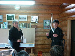●植林祭 6月10日(日) 約 350名の参加者を得て今年の植林祭は盛大なものになりました。今までにない多数の参加者に駐車場もパンク状態でした。前日からの雨に濡れ、生き生きとした新緑の中、2003年の植林地に約2000本の苗木を植えました。強風や虫、動物の食害により、木がまばらになったところに苗を補い、隙間がないほどに苗木を植え込みました。お昼は雨を避けて、分校跡に会場を移しました。これまでにない大勢の参加者に、トン汁が行き渡るか心配でしたが、厨房班の奮闘で、参加者の食欲に味はもちろん、ボリュウムの面でも十分応えられました。昼食のあとは、 『チェロ&ピアノの調べ・・・新緑の森の中で』と題し、コンサートが開催され、山小屋はチェロとピアノの音色につつまれました。今日一日を振り返ると、木を植え、山小屋でのチェロのコンサート、なんだか昔読んだ、宮沢賢治の童話の世界がイメージと一緒によみがえりました。植林地まで歩いての移動や、雨の影響で昼食会場の変更など、いろいろありましたが、悪天候にもかかわらず、参加いただいた皆様に感謝申し上げます。コンサートでは心にしみる演奏を聴かせていただいた、庄司里美さん、阿部恵美子さん、素晴らしい演奏をありがとうございました。そしてGRのスタッフのみなさんのご苦労を讃えたいと思います。 ●春を食べる会・ヤマハンノキ植林 5月13日(日) 参加者34名中、一般からは子供3名を含む12名の方に参加いただきました。新聞で紹介された効果が現れたようです。当日は時折にわか雨の降る不安定な天候でした。料理ができるまでの間、ヤマハンノキなどの苗木60本ほどの植林体験を通じて、一般参加の方に会の活動について理解していただきました。お目当ての山菜料理は、今年もたくさんの山菜が集まり、天ぷらや和え物に調理された春の味覚がテーブルを埋め尽くし、一同大満足でした。調理スタッフのみなさま、お疲れ様でした。