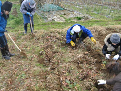 ● 定例会 12月9日(日) 二ヶ月ぶりに苗畑での作業で汗を流しました。木枯らし吹く寒空の下、2008年の植林祭に向けて苗木の根回しをしました。