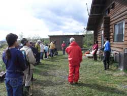 ● 蔵王をもっと知るハイキングU《春を告げる植物観察ハイク》 4月18日(土) 参加者は、ブナの会会員6名、インストラクター4名、一般2名の合計12名。 ● 定例会 4月12日(日) 13名の参加者により、苗畑の整理をしました。去年発芽した苗はすべて床替えを終えて、畝の曲がりはともかく、整然と植え替えられました。 ● 森の教室 3月22日(日) 5名の参加により2003年の植林地に78本のヤマハンノキを補植しました。暖冬のせいか、雪はすっかりとけていて、土に程よい湿り気があり、上々のコンディションでした。午後は野営場の実験区の樹高計測に向けて、場所の確認をしました。93年に植林した実験区は、高木に育った樹々が小鳥を呼び、木の枝には小鳥が巣を営み、林床には小鳥が運んだ種から芽生えたとみられる木の苗もあり、新しい生態系が育っていることが実感できました。 ● 定例会 3月8日(日) 11名の参加者により、去年発芽した苗の定植を行いました。長年に亘る育苗で土壌の栄養が乏しくなっ たのか、苗の生育はいまひとつでした。この日の作業で植林祭の苗は確保できましたが、今後畑への施肥が必要となりそうです。